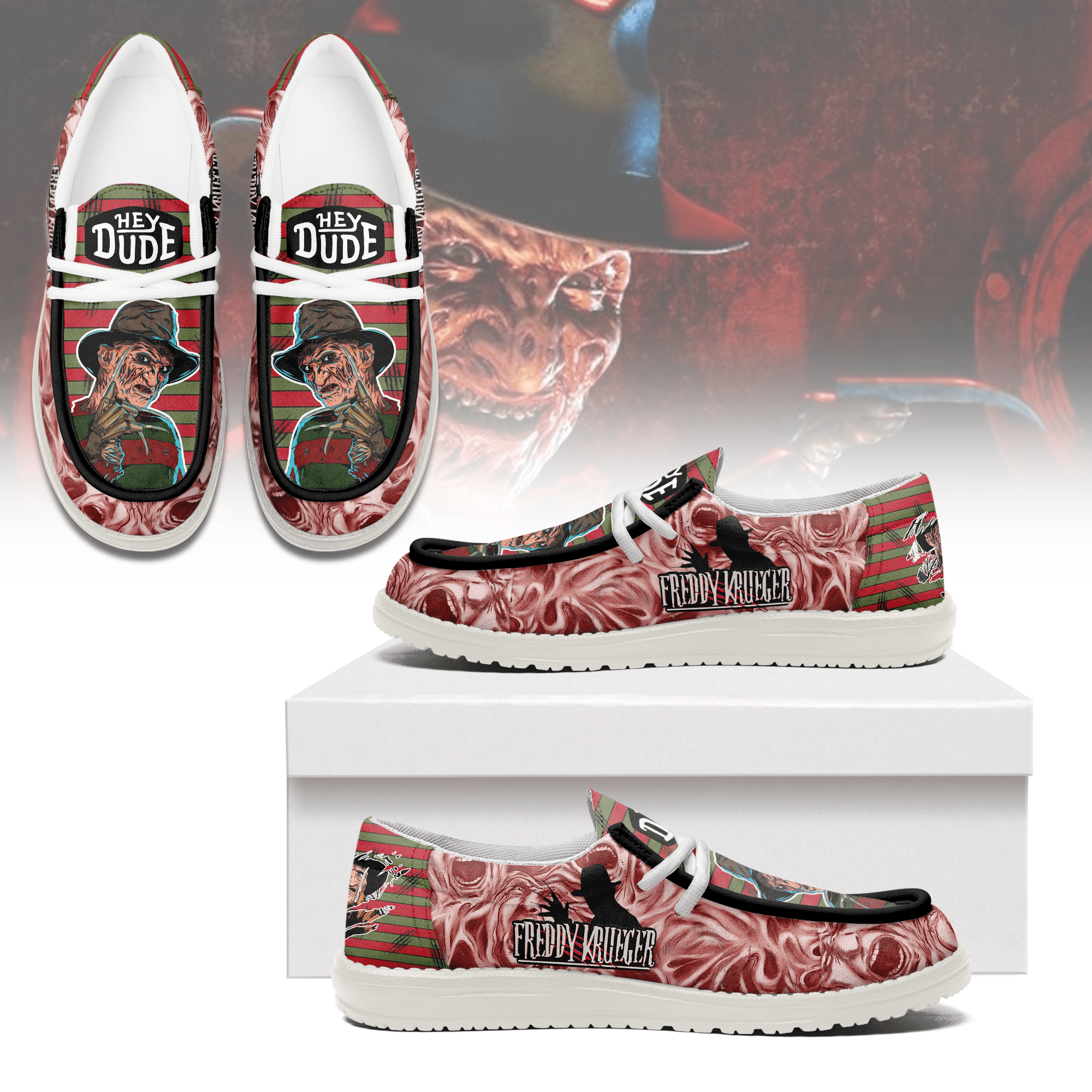 Sportwearmerch Frederick Charles Krueger x Halloween Personalized Hey Dude Shoes For Men And Women