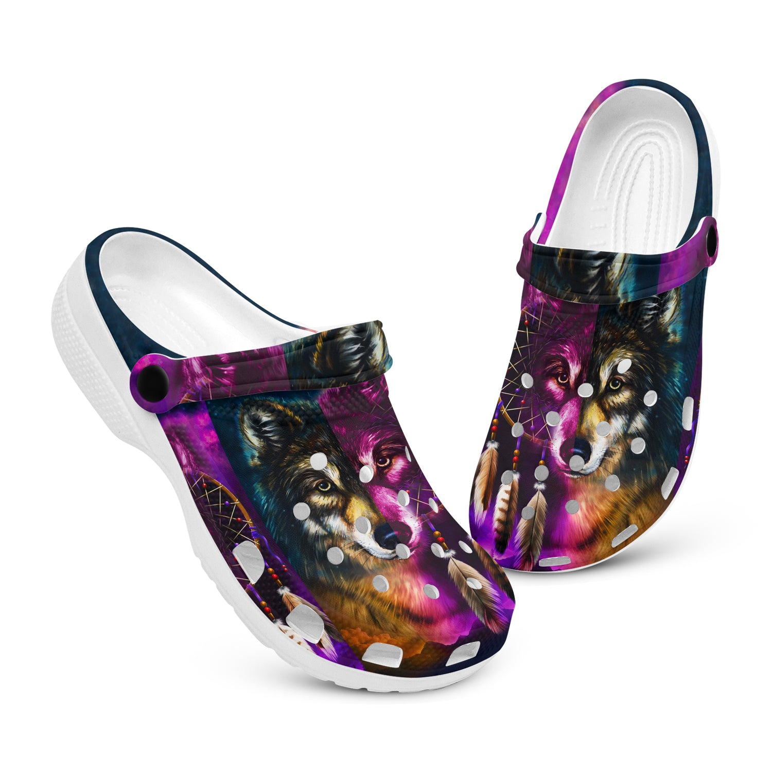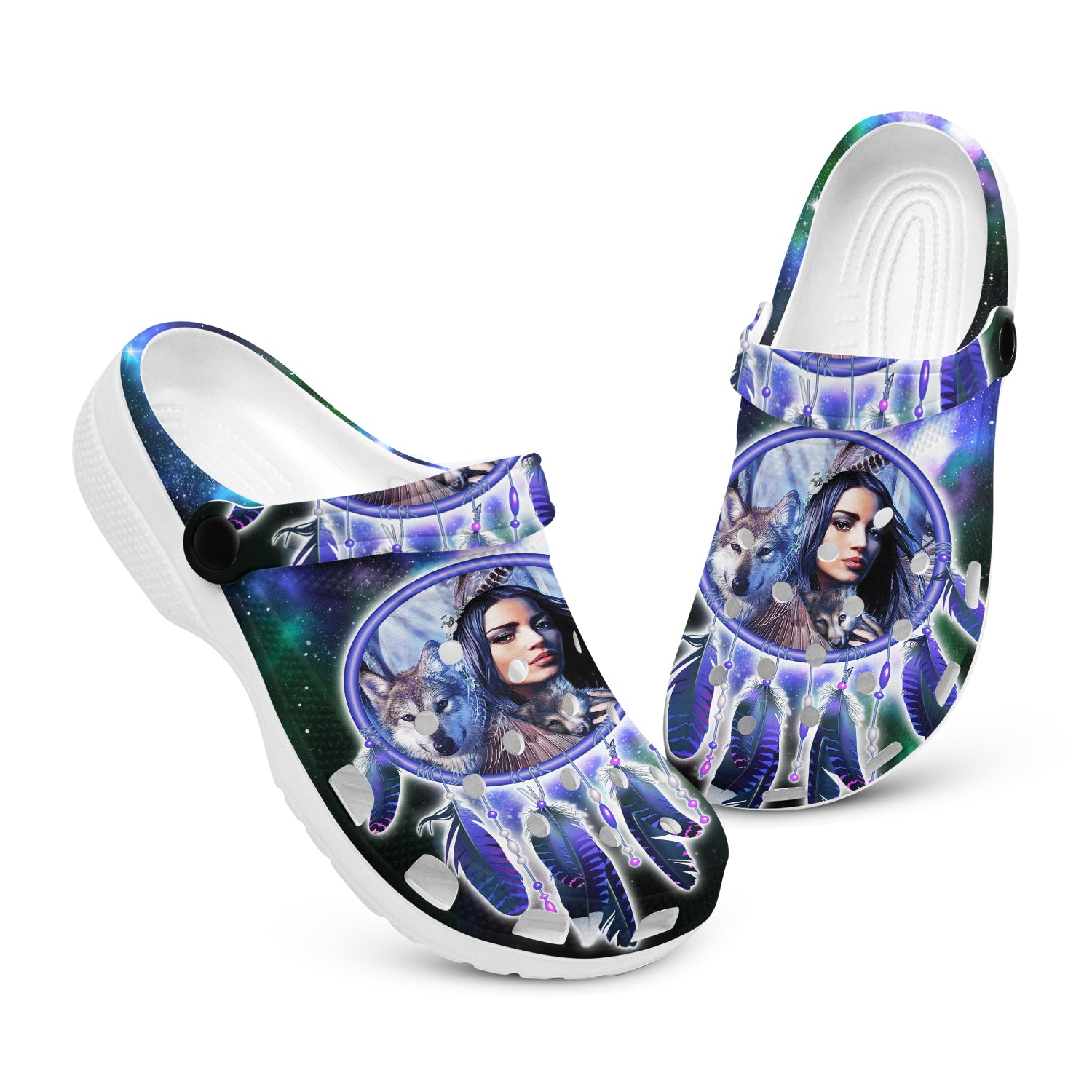 Footwearmerch Native American Wolf Girl Crocs Clog Shoes For Kid and Adult