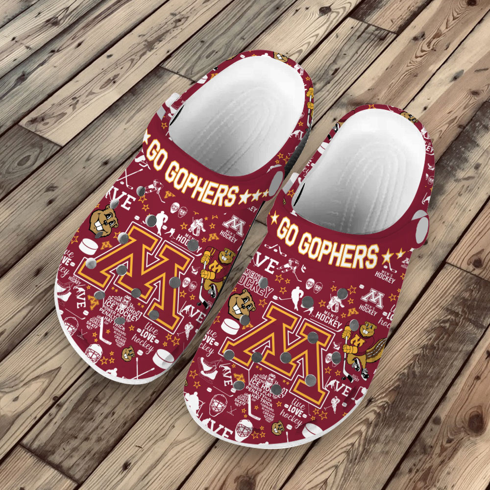 Footwearmerch Premium Minnesota Golden Gophers NHL Sport Crocs Crocband Clogs Shoes For Men Women and Kids