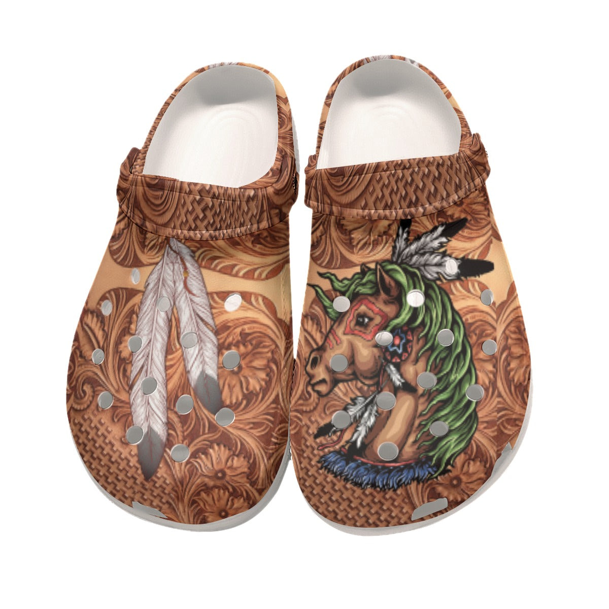 Footwearmerch Native American Native Feather – Horse Crocs Clog Shoes For Kid and Adult