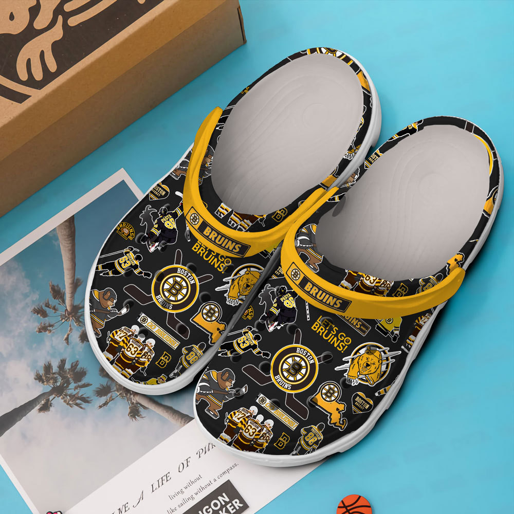 Footwearmerch Boston Bruins Ice hockey team NHL Sport Crocs Clogs Crocband Shoes Comfortable For Men Women and Kids