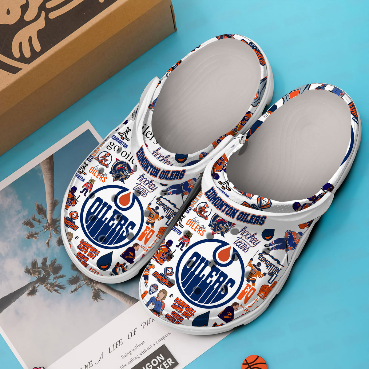 Footwearmerch Edmonton Oilers Hockey NHL Crocs Clogs Crocband Shoes Comfortable For Men Women and Kids